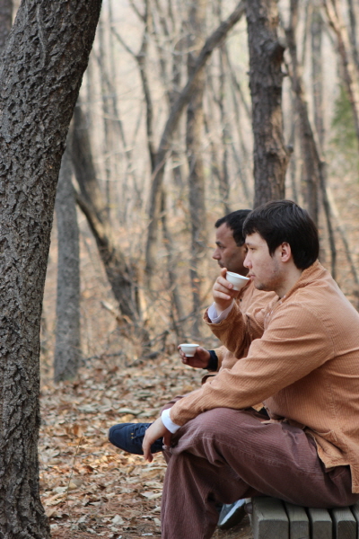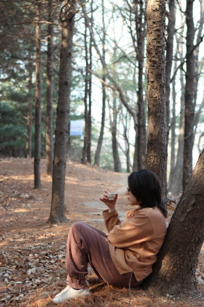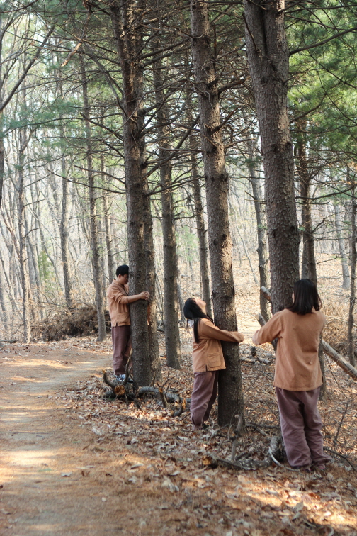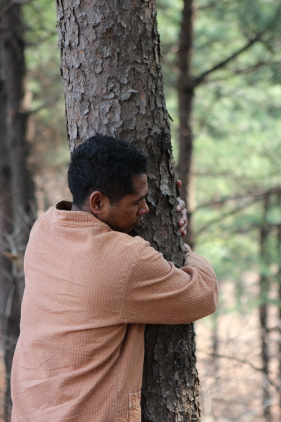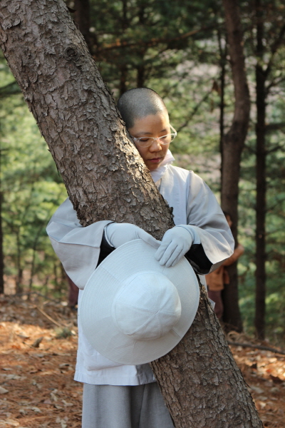 (Walking meditation in forcst)